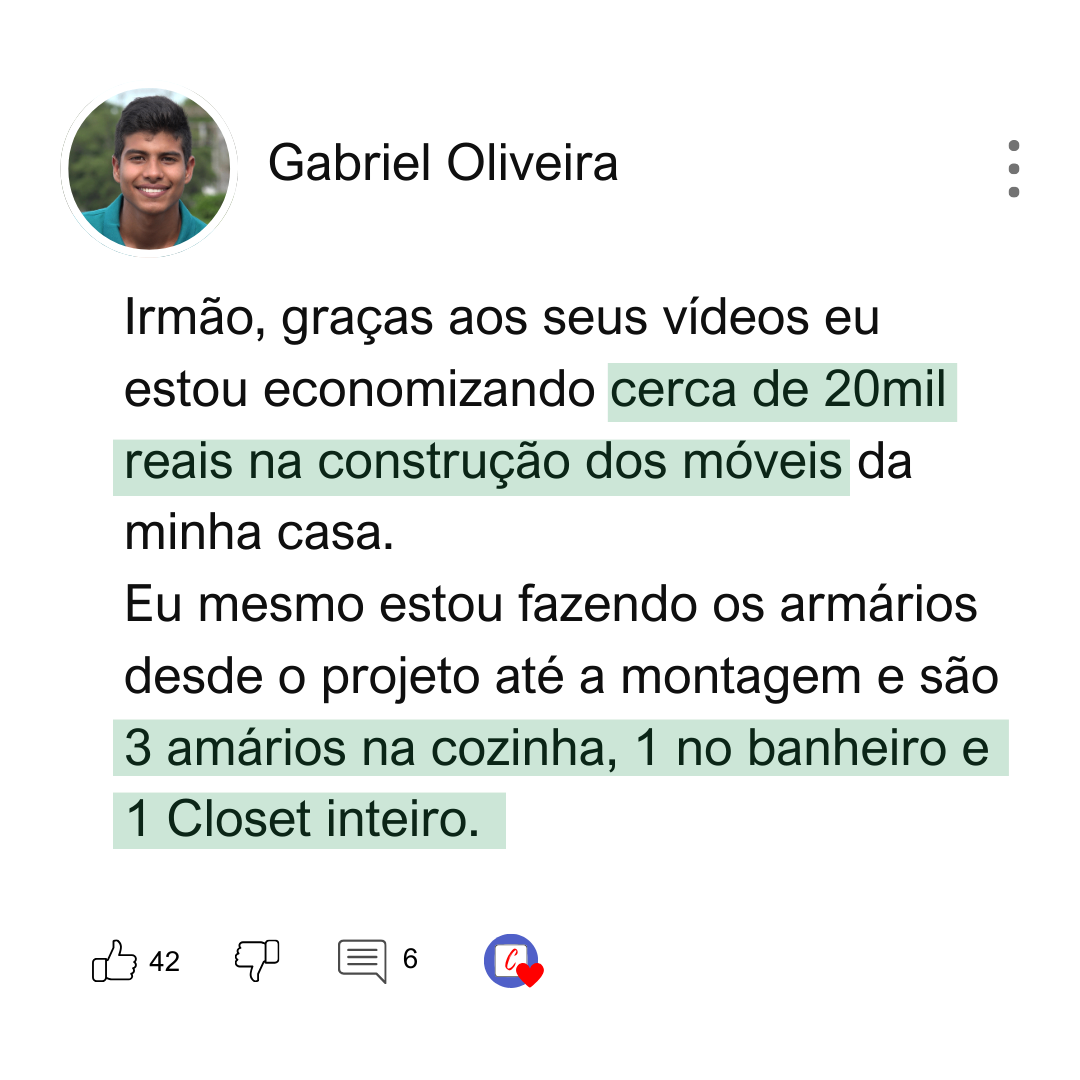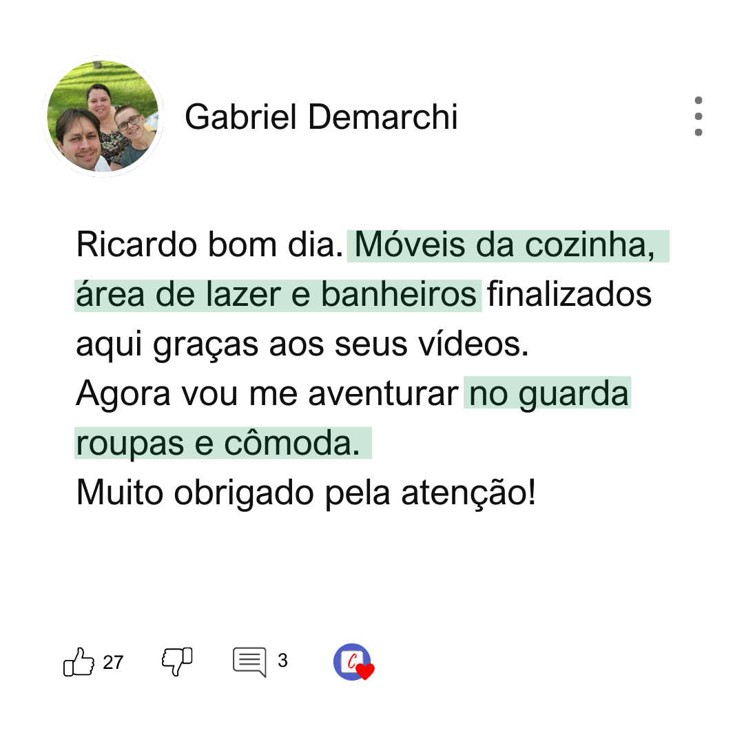 O treinamento Completo de Marcenaria para Iniciantes é um método já comprovado e aprovado por centenas de pessoas, o que realmente funcionou na prática para meus alunos e também para mim.